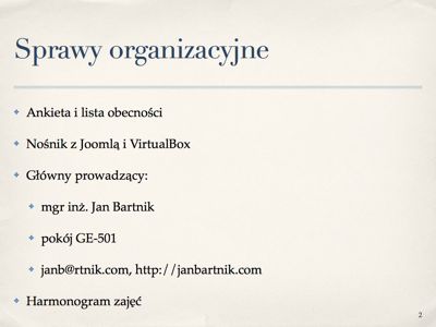 Poniżej znajdują się slajdy z warsztatów. Materiał w plikach JPEG zajmujący łącznie 1 MB.